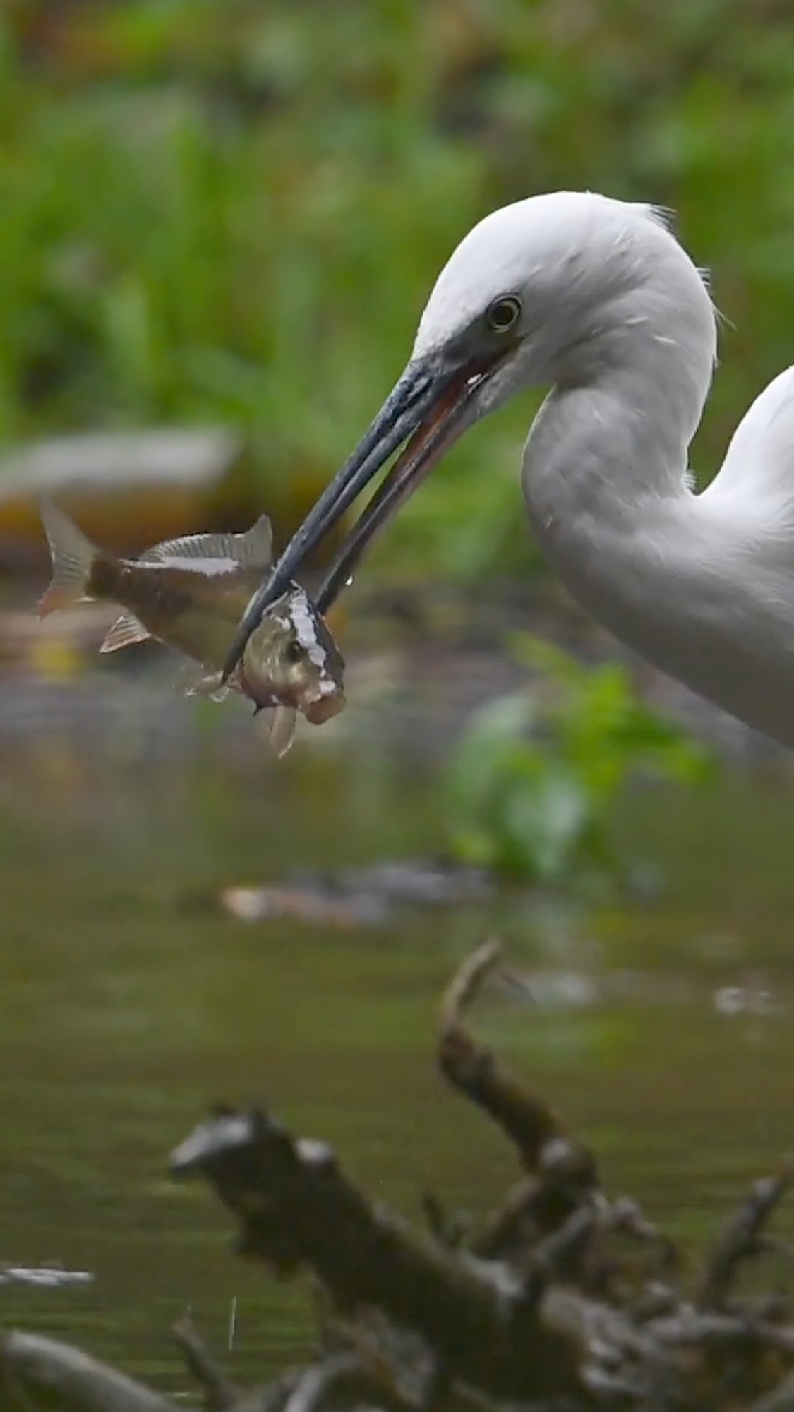 Little Egret Catching Fish (Slow Motion)