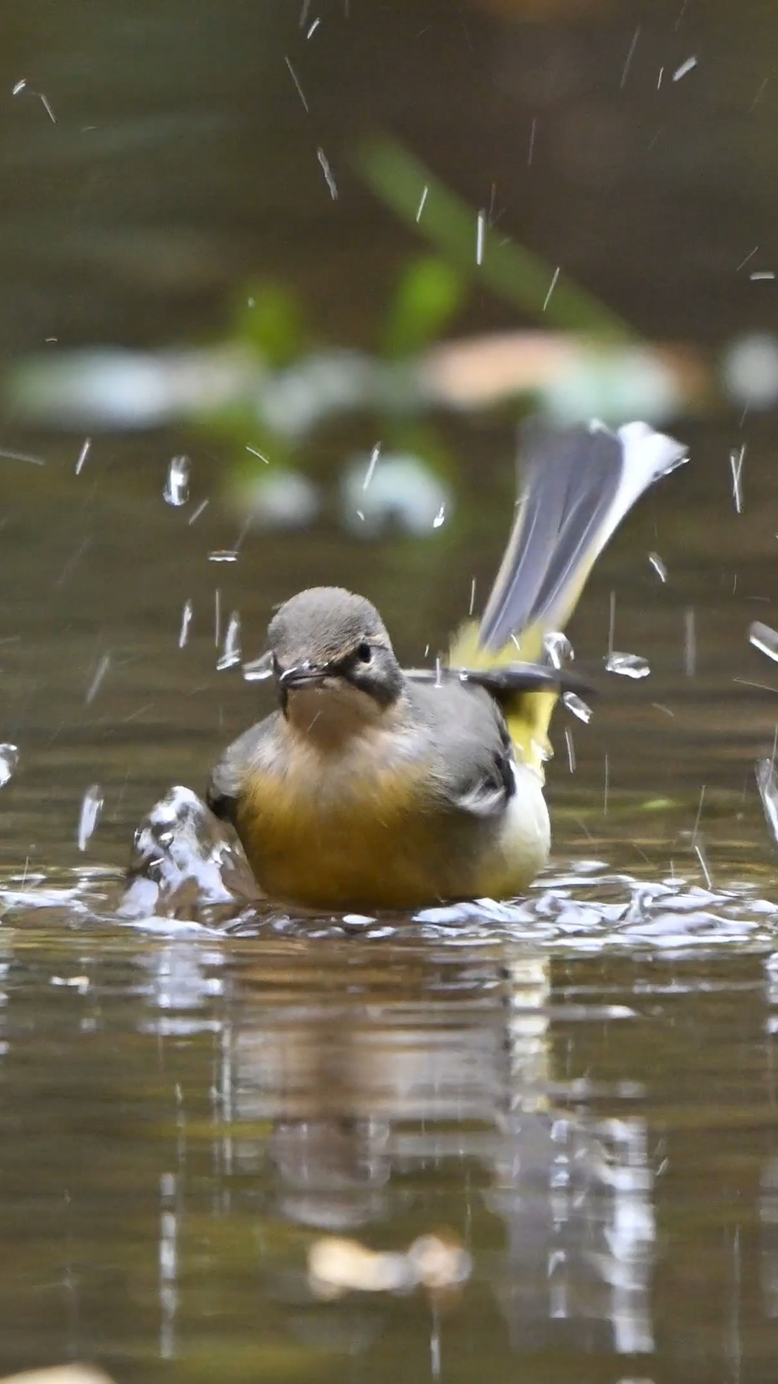 Grey Wagtail Bathing (Slow Motion)