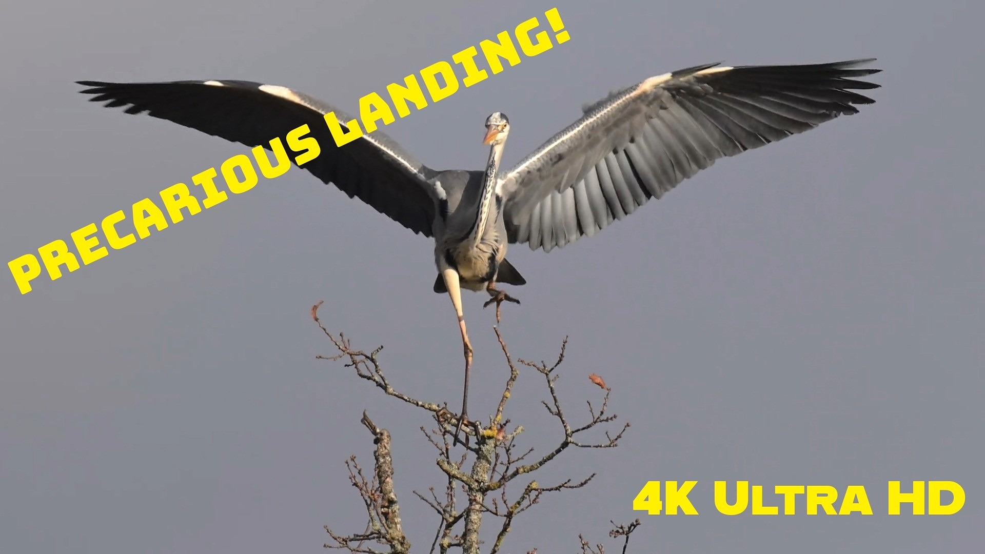 Grey Heron Makes Precarious Landing!